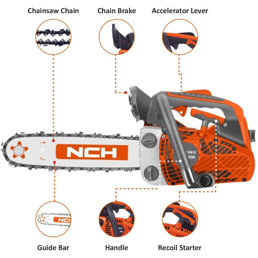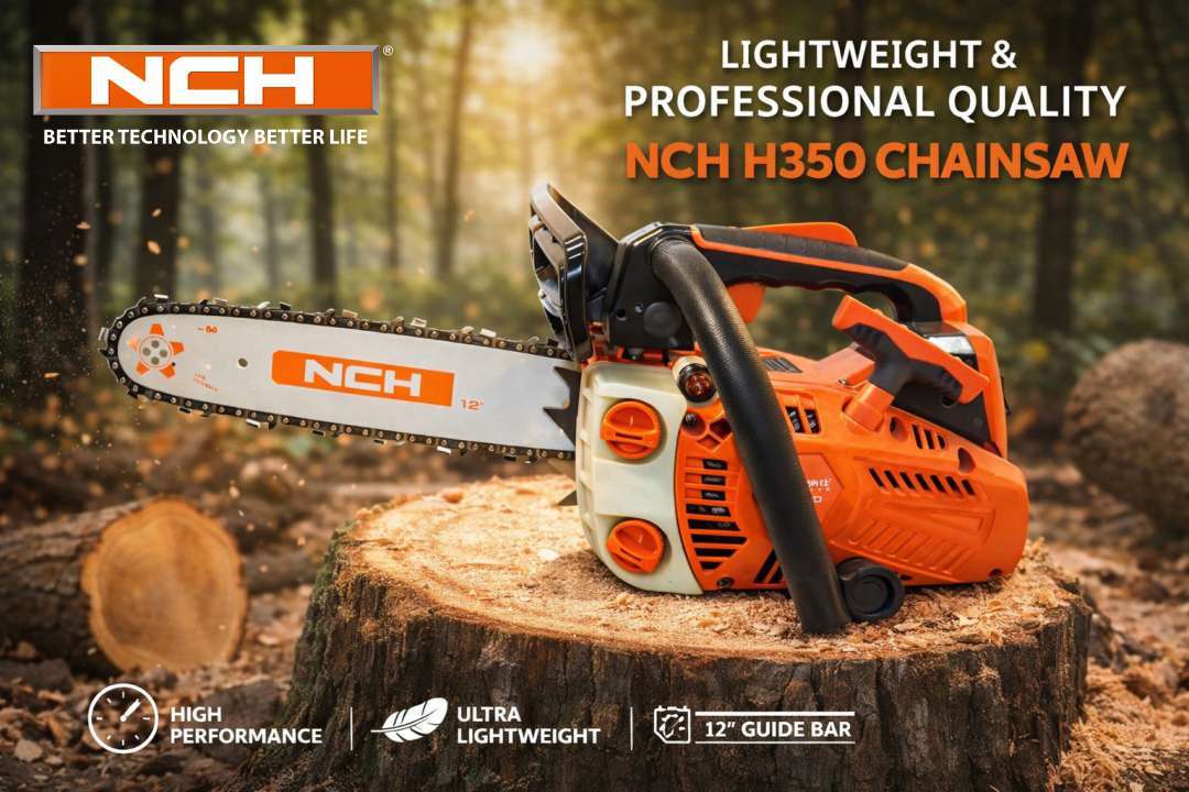 The NCH H350 Chainsaw delivers powerful and reliable performance for heavy-duty wood cutting, pruning, and farm use. Moreover, its 25cc 2-stroke petrol engine produces 0.9kW power, which ensures smooth and efficient cutting for both small and medium-sized trees. As a result, users achieve faster and cleaner cuts with less effort.